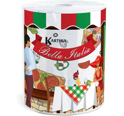 Konyhai, háztartási 3 rétegű cellulóz papírtörlő 200 lap, Bella Italia mintával